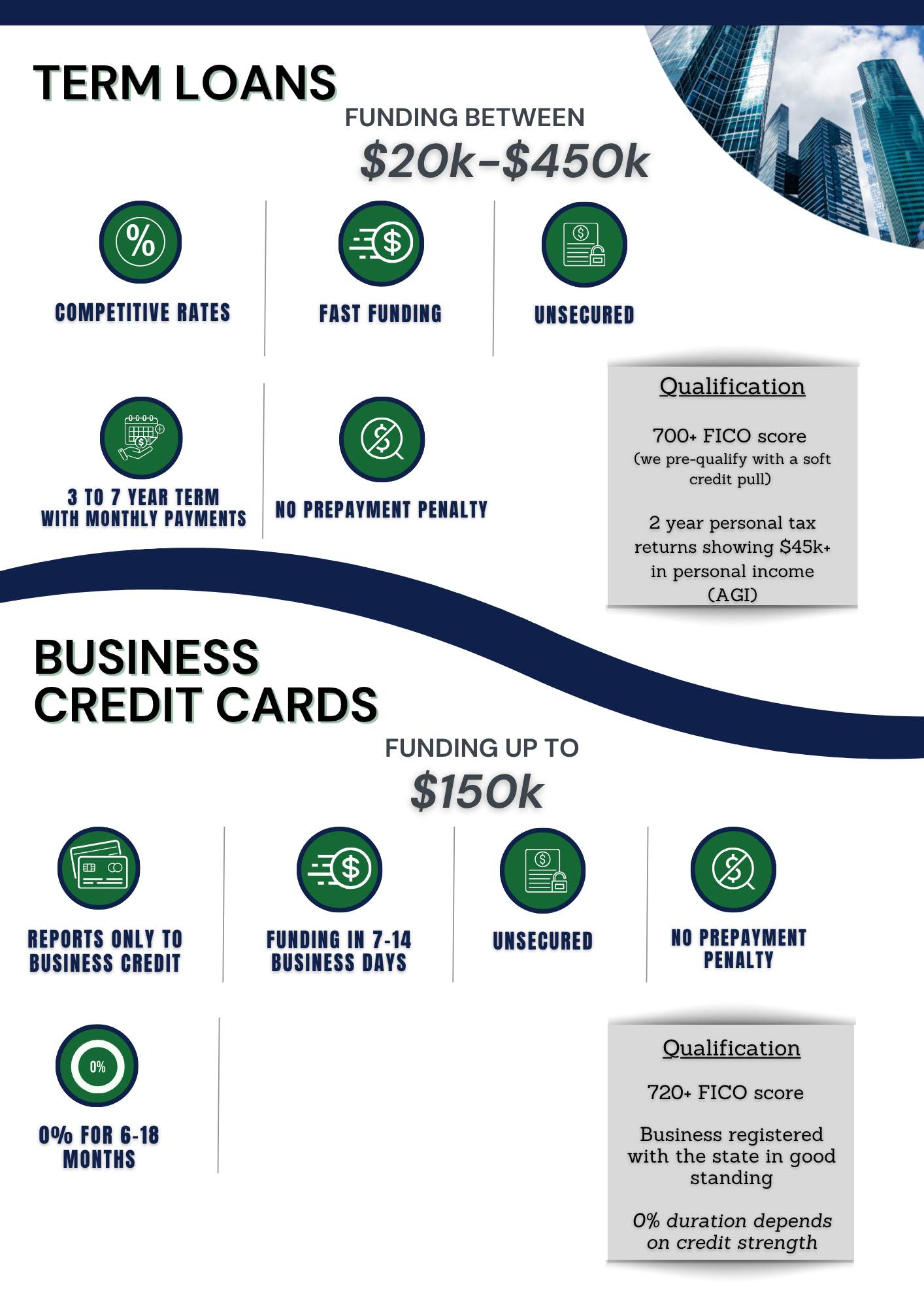 We work with both individuals and businesses nationwide, offering solutions for credit repair, debt consolidation, loans, and startup funding.